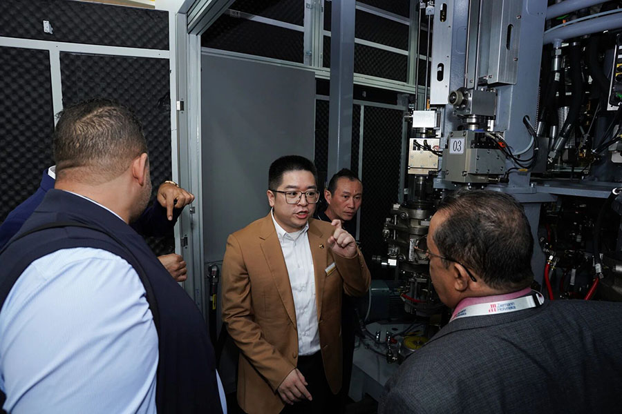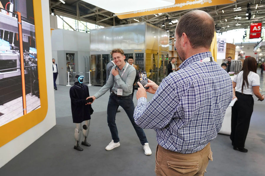 展台前,人形机器人正在为观众们讲解达意隆的公司介绍与设备优势,观众们纷纷驻足互动,在一问一答间,对达意隆的技术实力与产品创新有了更生动的认知。